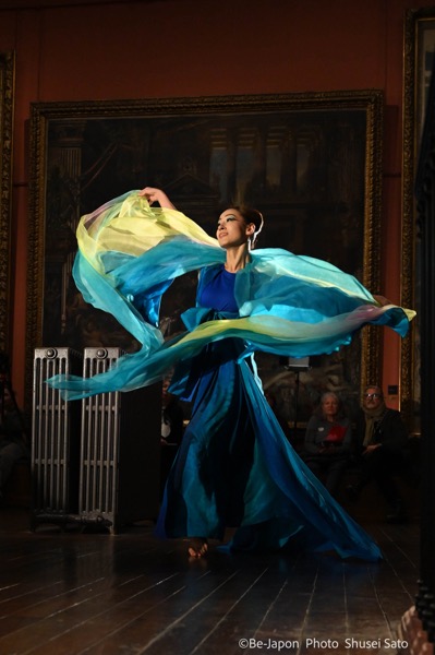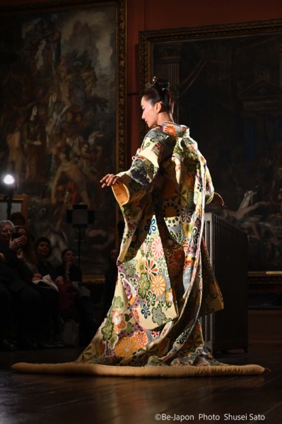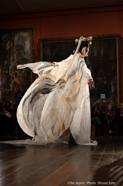 Be-Japon is a comprehensive stage performance that conveys the beauty of Japan through five senses, including music, dance, images, flowers and fragrances, with a focus on costumes created from kimonos from the Edo, Meiji and Taisho periods.